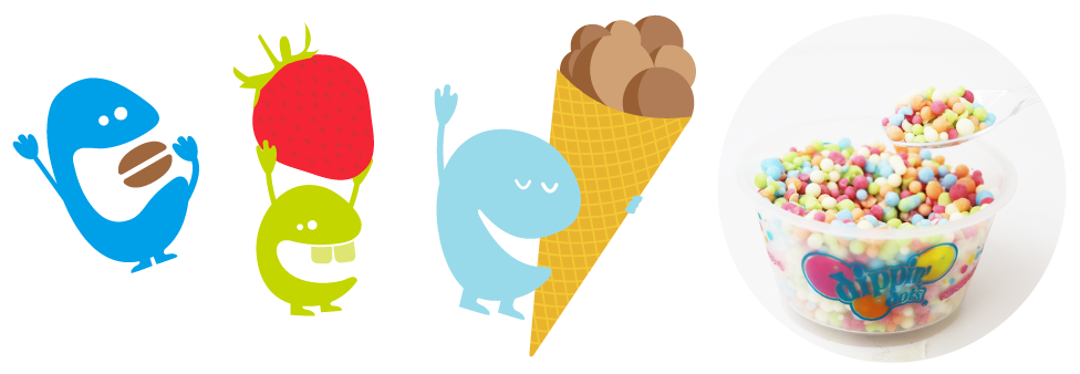 ディッピンドッツは、画期的な独自製法で作られた「つぶつぶ・さらさら・カラフル」な見た目と食感が特徴のアメリカ生まれのアイスクリーム。